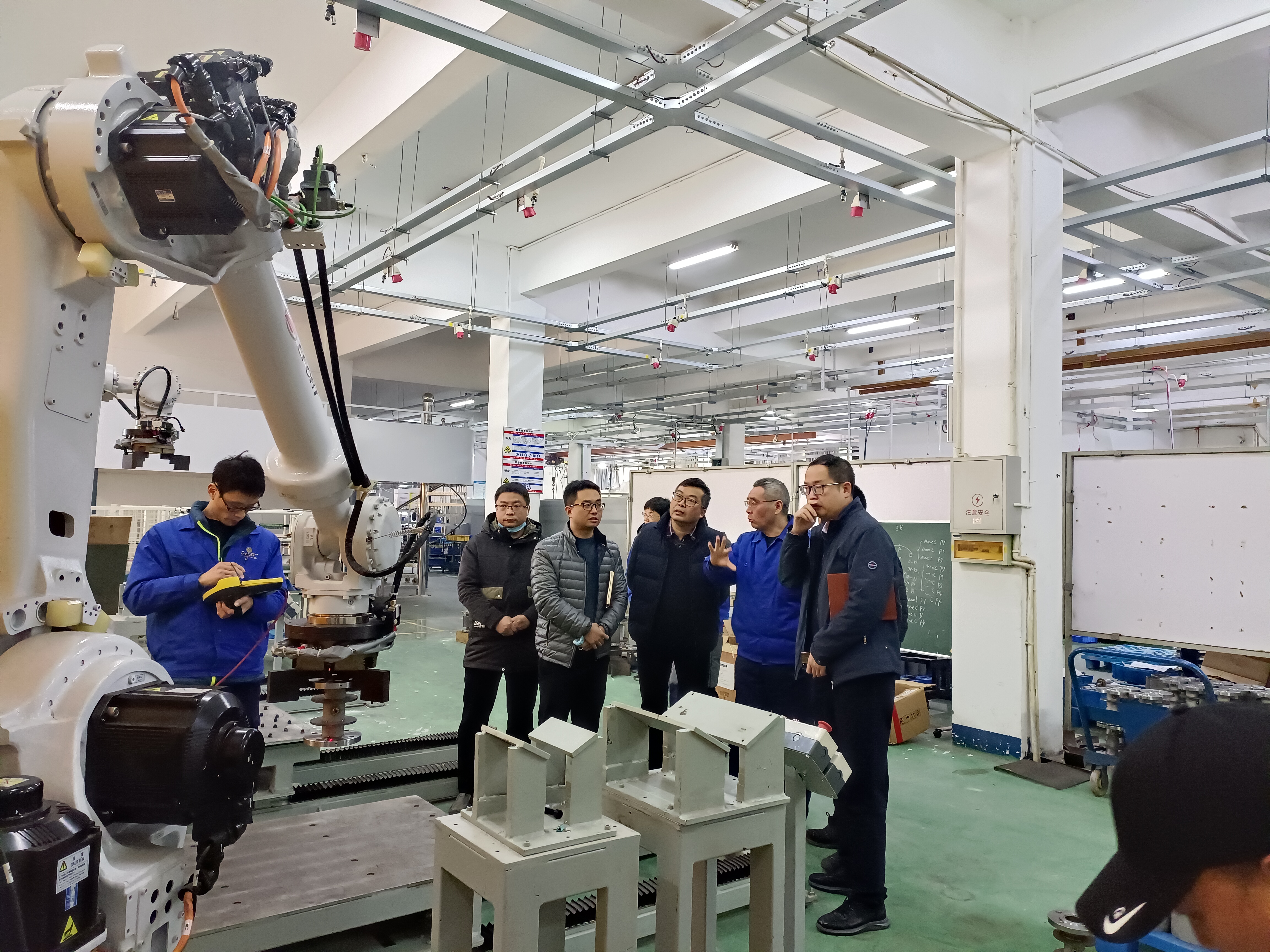 今日上午,義烏工商學(xué)院院長(cháng)攜機電信息學(xué)院領(lǐng)導、專(zhuān)家一行來(lái)訪(fǎng)我司,董事長(cháng)馮澤云及總經(jīng)理助理吳美清全程陪同客人參觀(guān)了研發(fā)中心、生產(chǎn)車(chē)間,馮董介紹了企業(yè)信息系統軟件開(kāi)發(fā)管理情況、數字化系統運行及以焊接機器人、智能立庫、AGV物流等智能制造設備設施的運行情況。